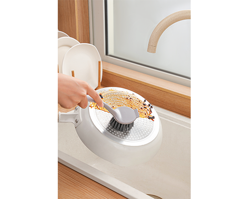 带铲的刷头设计,在刷洗锅具餐盘时无惧粘锅焦底污渍,一铲即净,不易沾油,水冲就干净,浓密刷丝耐用不掉毛。