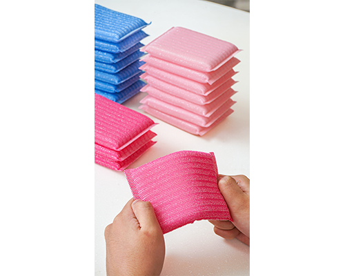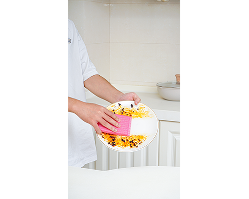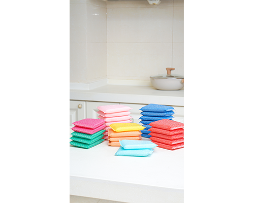 竖条纹设计,多角度清除污迹,不伤锅具,内置高密度海绵,起泡丰富,经久耐用不易变形。