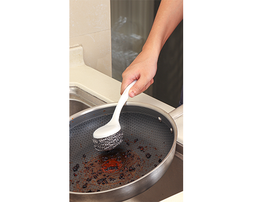 合适清洁各类铁锅类,陶瓷,不锈钢类,钢丝具有高效强力除污能力,主体手柄设计角度忧坚实不易折不变形,使用不劳累。