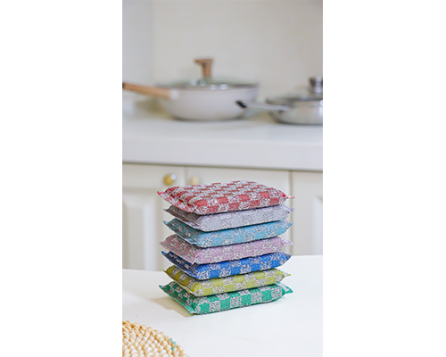 格子提花设计,多角度清除污迹,不伤锅具,内置高密度海绵,经久耐用不易变形。