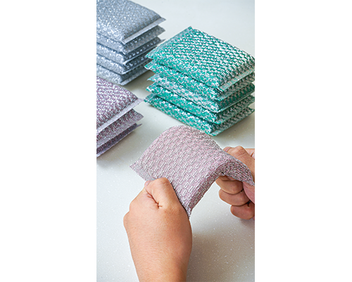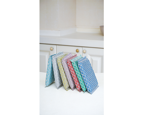 格子提花设计,多角度清除污迹,不伤锅具,内置高密度海绵,起泡丰富,经久耐用不易变形。