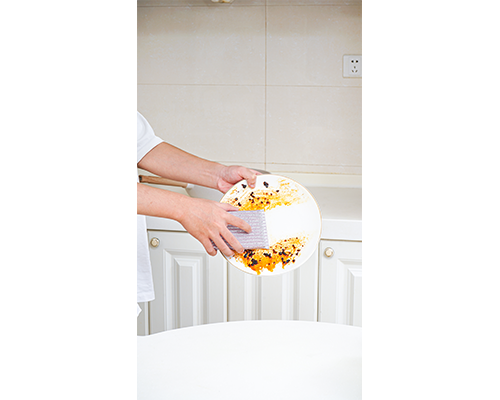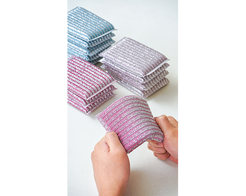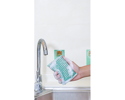 竖条纹设计,多角度清除污迹,不伤锅具,内置高密度海绵,起泡丰富,经久耐用不易变形。