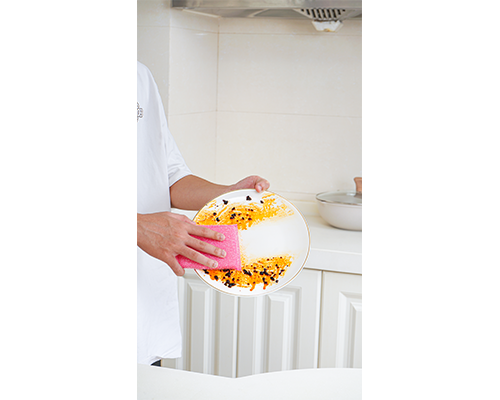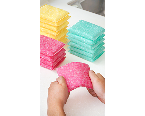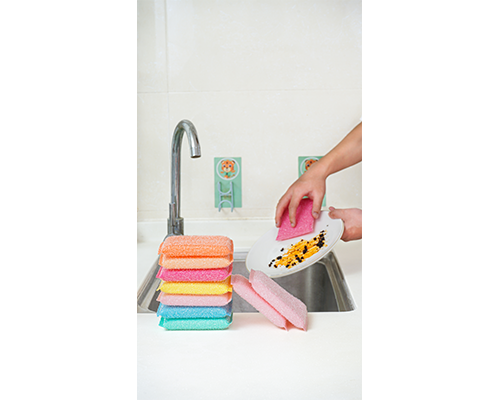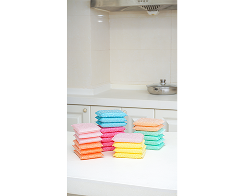 针织钩编浓密毛圈,清除顽固污迹,不伤锅具,内置高密度海绵,起泡丰富,经久耐用不易变形。