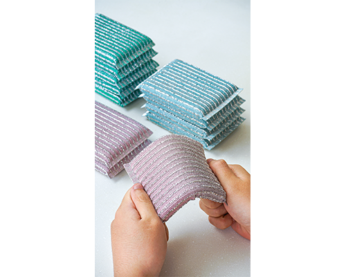 竖条纹设计,多角度清除污迹,不伤锅具,内置高密度海绵,起泡丰富,经久耐用不易变形。